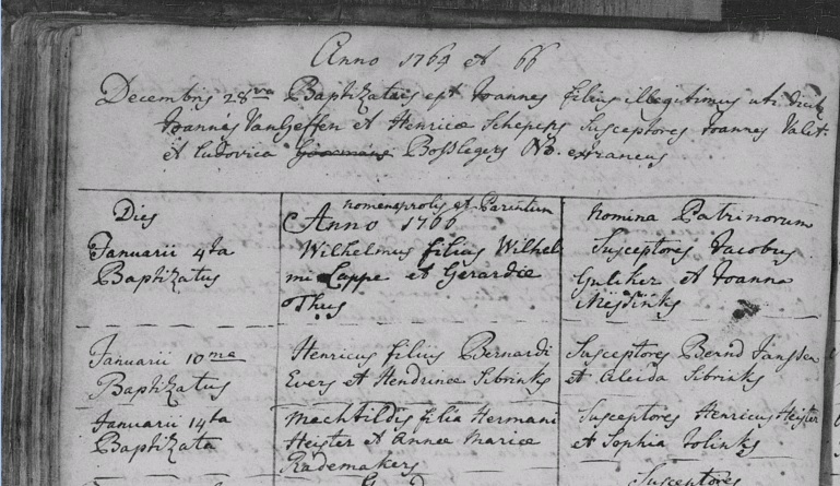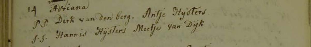 | Doop van een zus | Joanna Hijster (Heister) 9 januari 1756 (Leeftijd 10 jaar) Notitie: Getuigen: Hendrick Alefs, Phijken Polmans. |