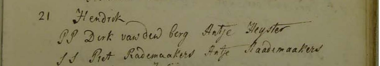 | Doop van een zoon | Hendrik van den Berg 21 juni 1785 (Leeftijd 39 jaar) |