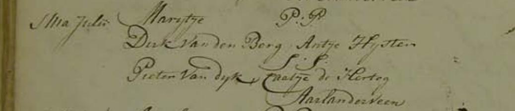 | Doop van een dochter | Marijtje van den Berg juli 1789 (Leeftijd 43 jaar) |