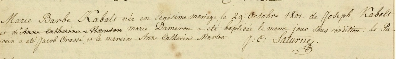 | Doop van een zus | Maria Barbara Cabalt (Kabalt) 29 oktober 1801 (Leeftijd 5 jaar) Adres: Franse Kapel |