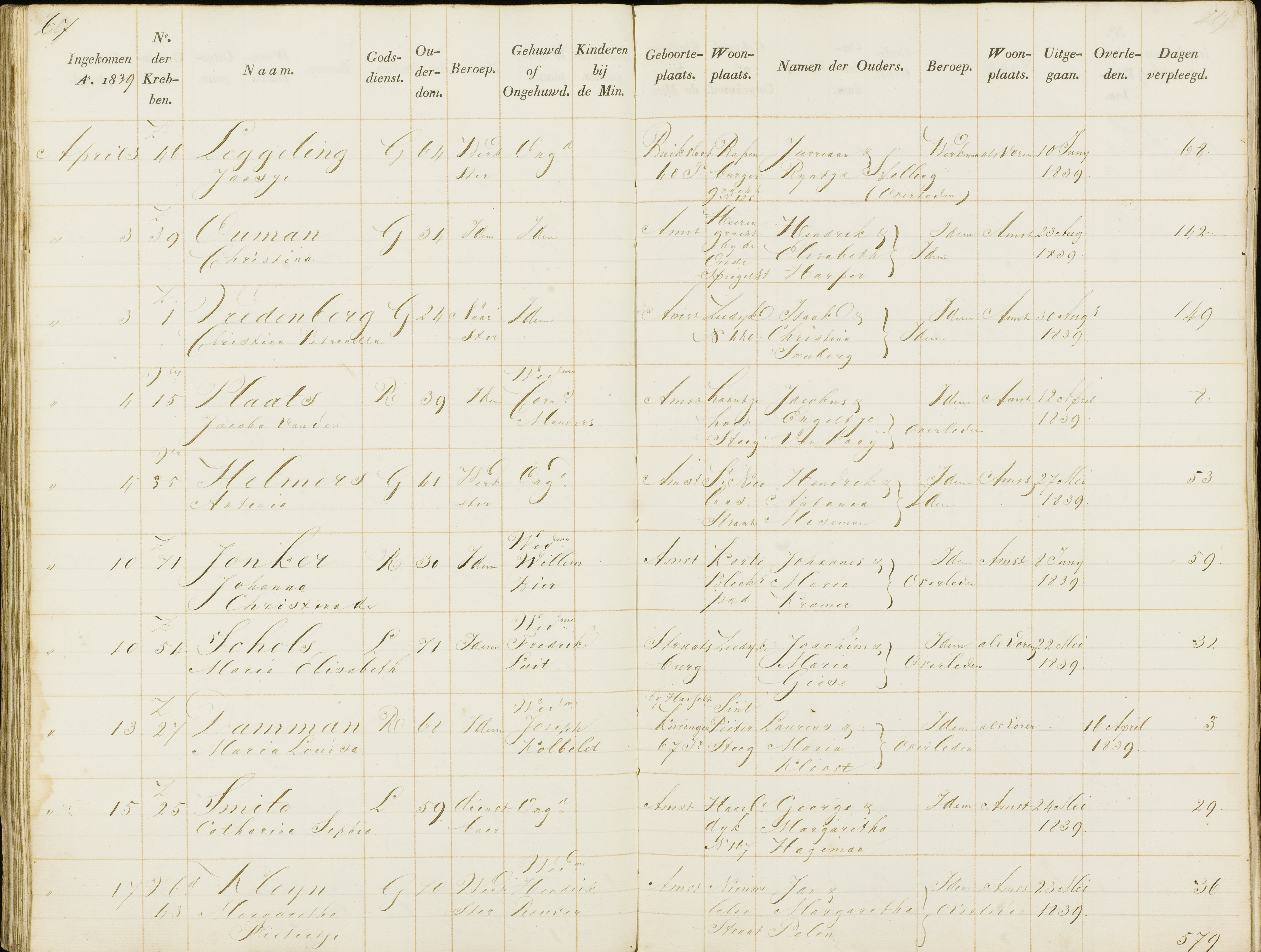 | Overlijden van moeder | Maria Louisa Dameron (d'Amaront) 16 april 1839 – 13:00 (Leeftijd 42 jaar) Adres: Buitengasthuis aan de Overtoom |
