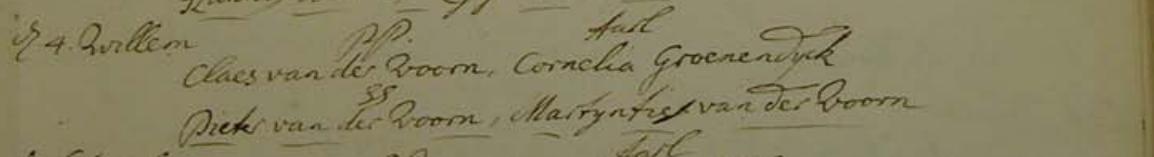 | Huwelijk van ouders | Nicolaas ‘Klaas’ van der Voorn — Cornelia ‘Kee’ Groenendijk — Bekijk dit gezin 13 april 1770 |