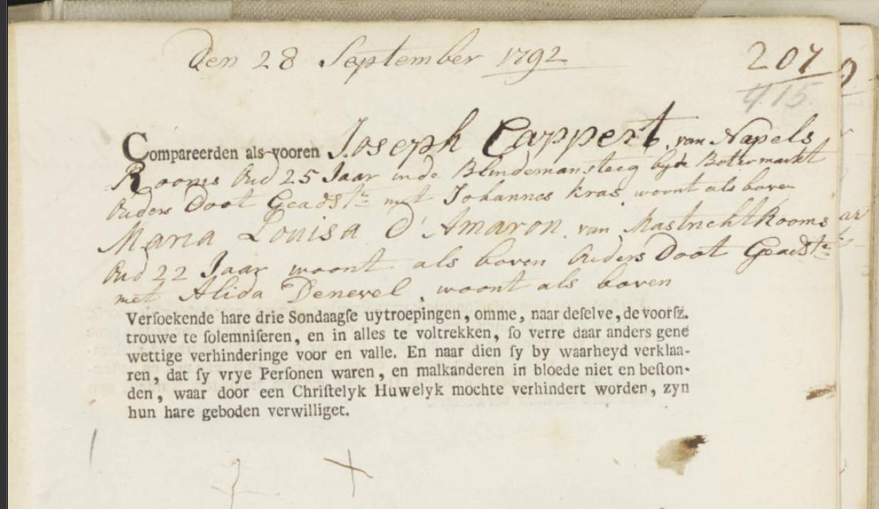 | Woonplaats | 1792 (Leeftijd 30 jaar) Adres: Blindemansteeg bij de Botermarkt. Duvelshoek |