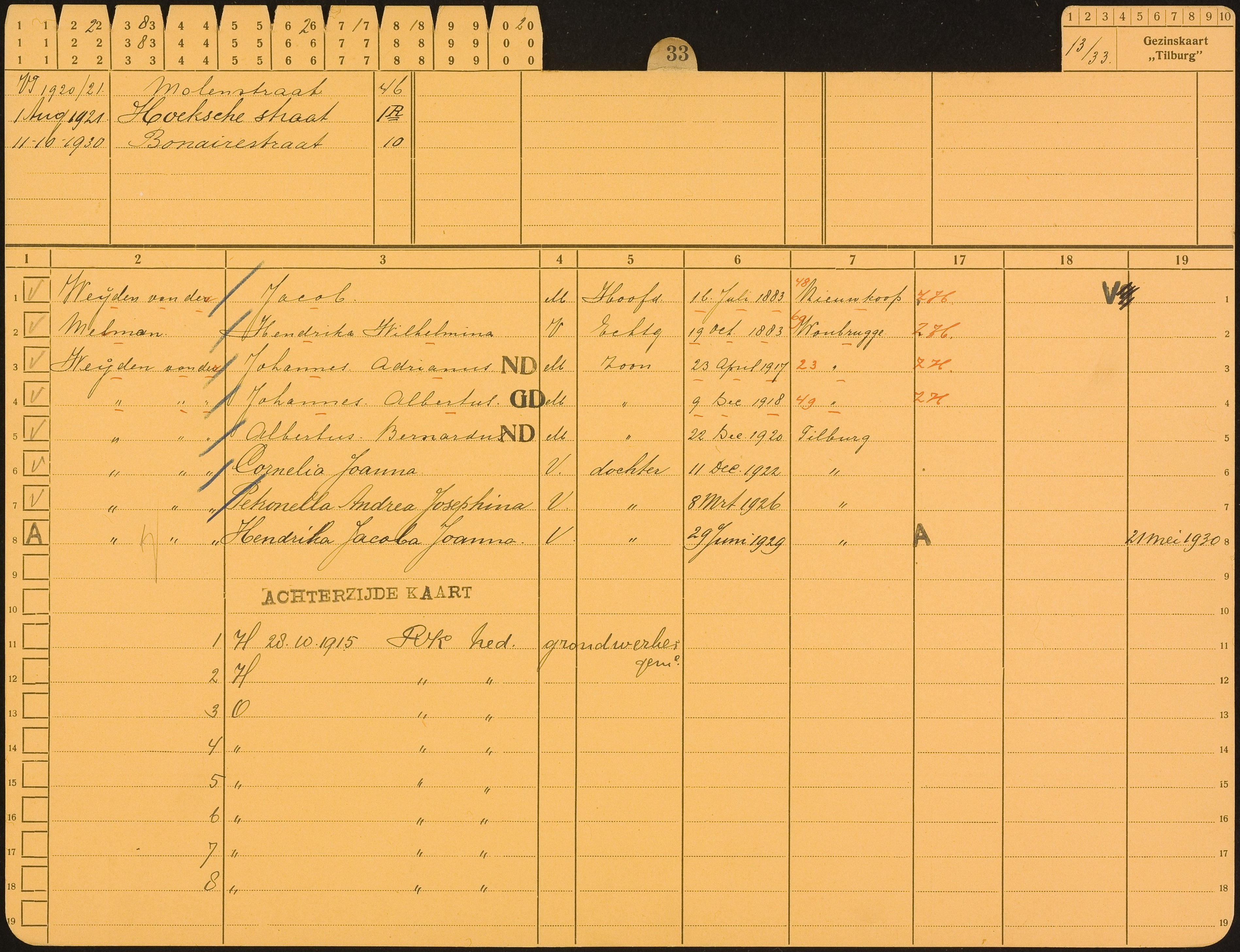 | Woonplaats | 1 augustus 1921 (Leeftijd 38 jaar) Adres: Hoeksche straat 1R |