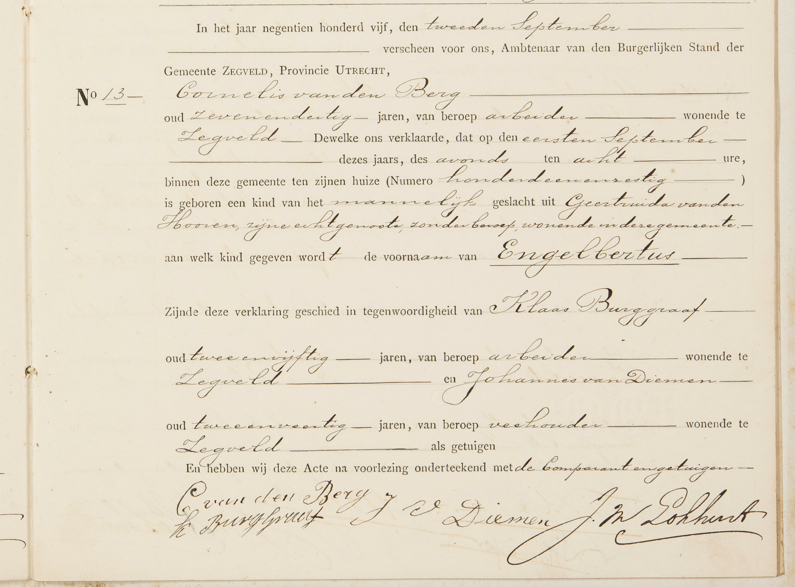 | Geboorte van een broer | Engelbertus van den Berg 1 september 1905 – 20:00 (Leeftijd 5 jaar) Adres: Nr. 161 |
