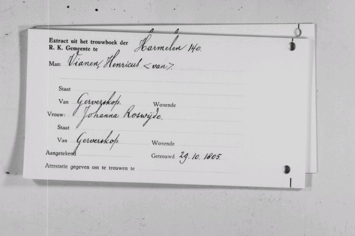 | Huwelijk van een broer/zus | Hendrik Vianen — Johanna ‘Hanna’ Rosweij — Bekijk dit gezin 29 oktober 1805 (Leeftijd 14 jaar) |