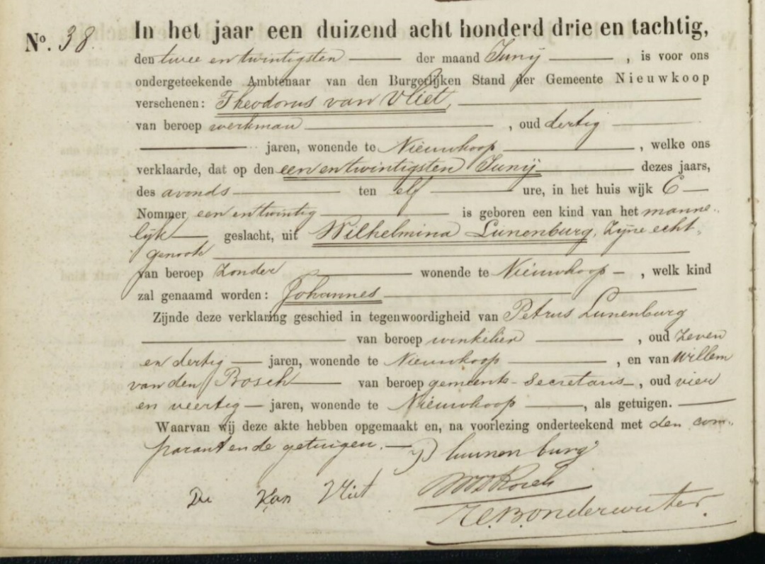 | Geboren | 21 juni 1883 30 30 Adres: Wijk C, nr. 21 Getuige: Petrus Lunenburg — oom |