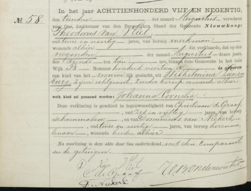 | Geboorte van een zus | Johanna Cornelia van Vliet 9 augustus 1895 (Leeftijd 12 jaar) Adres: Wijk B, nr. 114a |