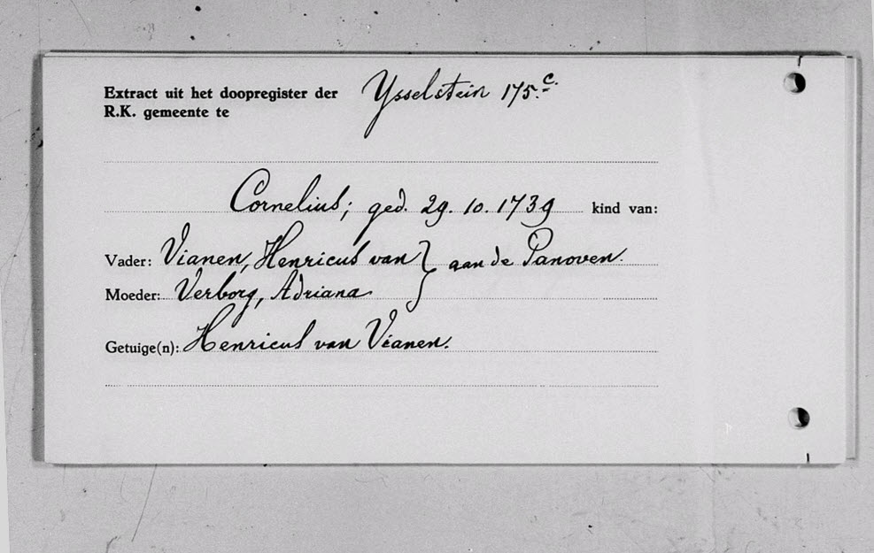 Cornelius Vianen Geboren: 1 maart 1737 22 — IJsselstein (Utrecht) Overleden: |