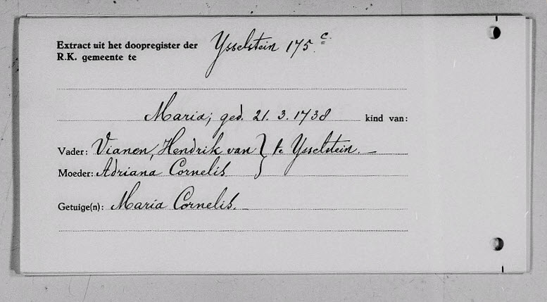 Maria Vianen Geboren: 21 maart 1738 23 — IJsselstein (Utrecht) Overleden: |