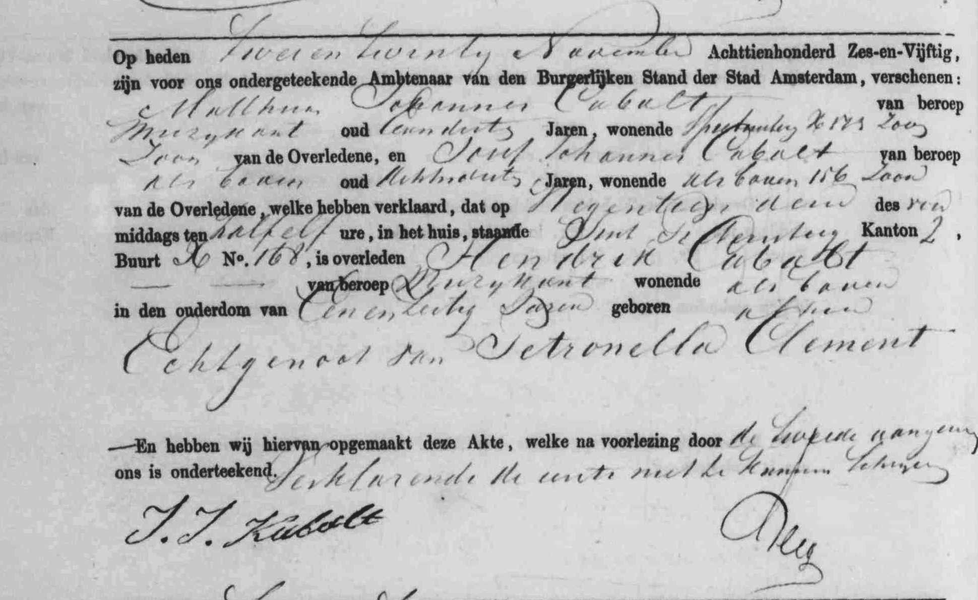 | Overlijden van grootvader van vaders kant | Henricus ‘Henderik’ Cabalt (Kabalt) 19 november 1856 (Leeftijd 5 jaar) |