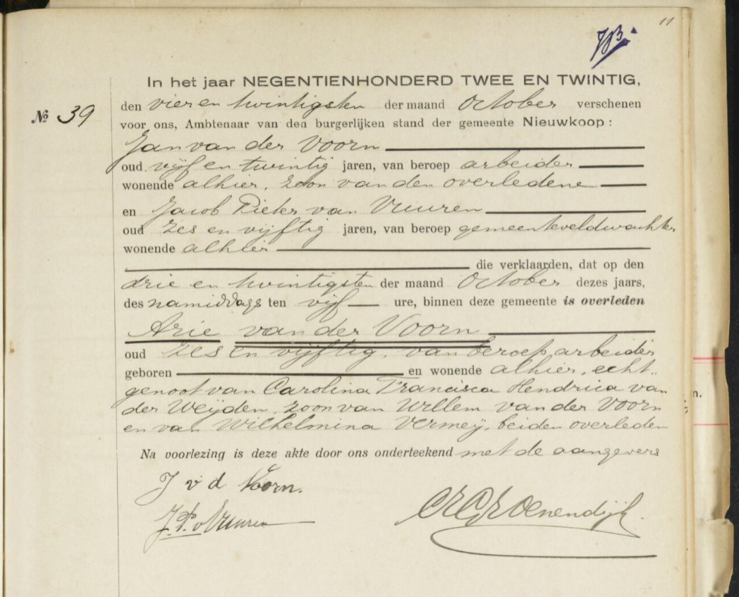 … van der Voorn Geboren: 3 november 1907 41 29 — Nieuwkoop (Z-H) Overleden: 3 november 1907 — Nieuwkoop (Z-H) |