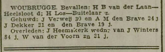 | Overlijden van een broer | … van der Voorn 24 december 1916 – 16:00 uur (Leeftijd 14 jaar) |