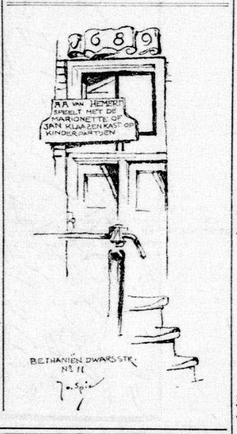 | Media object | Formaat: image/jpeg Afmetingen afbeelding: 580 × 898 pixels Bestandsgrootte: 176 KB Soort: Foto Gemarkeerde afbeelding: nee Notitie: Blindemansteeg 19, Duivelshoek. Boven het Water en Vuur winkeltje "DE MORGENSTOND" hangt een bord met met reclame voor poppenspeler A.A. van Hemert |