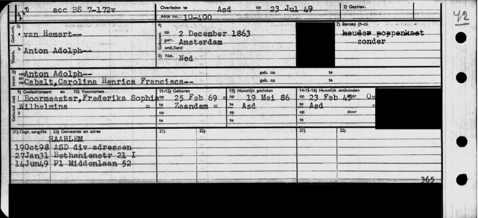 Wilhelmina Maria van Hemert Geboren: 18 april 1869 38 41 — Amsterdam (N-H) Overleden: |
