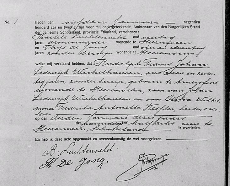 | Overlijden van grootvader van vaders kant | Rudolph Frans Wichelhausen 9 april 1873 (Leeftijd 22 jaar) |