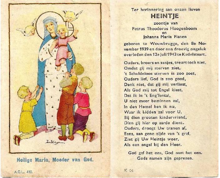 | Overlijden van een kleinzoon | Hendrik Theodorus ‘Heintje’ Hoogenboom 12 juli 1943 (Leeftijd 81 jaar) |
