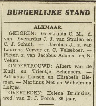 Huwelijk: 24 juli 1912 — Alkmaar (N-H) |