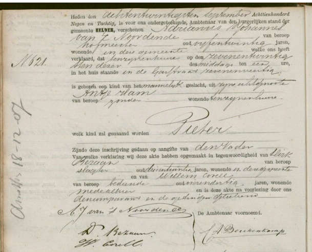 Pieter van 't Noordende Geboren: 27 september 1889 — Den Helder (N-H) Overleden: |
