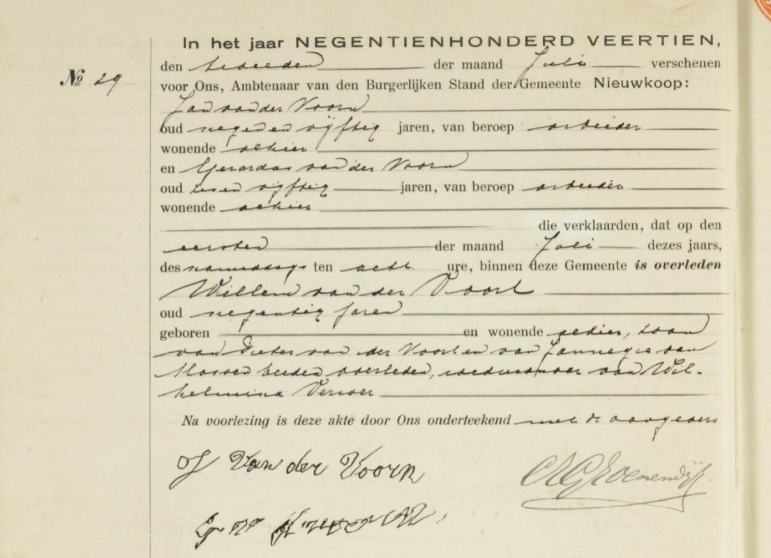 | Overlijden van een broer | Willem van der Voorn 1 juli 1914 – 20:00 uur (Leeftijd 92 jaar) |