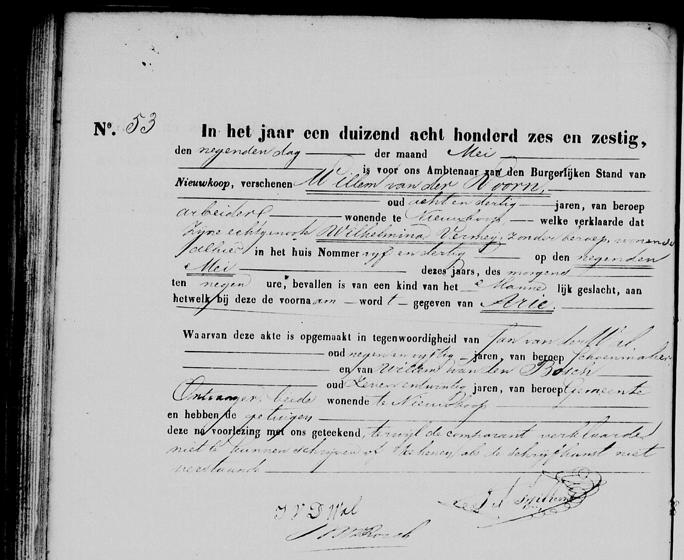 | Geboorte van een broer | Arie van der Voorn 9 mei 1866 – 09:00 uur (Leeftijd 11 jaar) Adres: Nr. 35 |