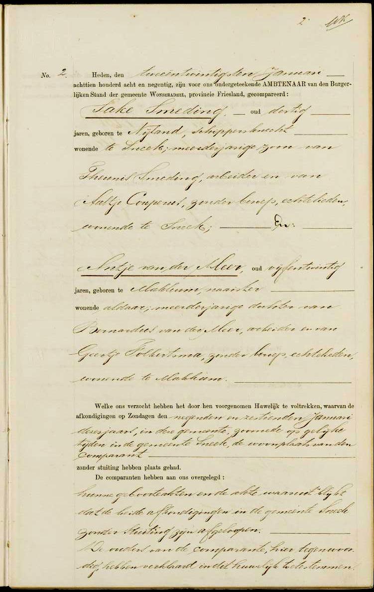 Huwelijk: 22 januari 1898 — Wonseradeel (Friesland) |