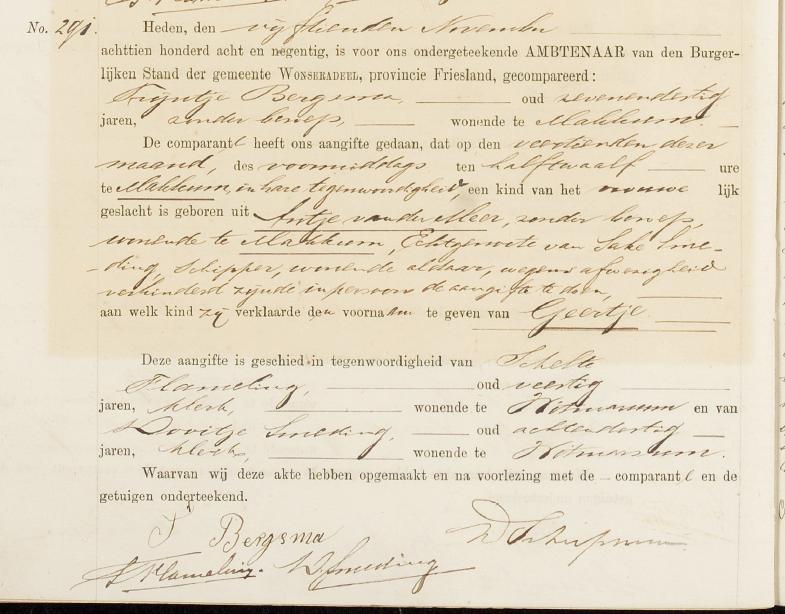 | Geboorte van een dochter #1 | Geertje Smeding 14 november 1898 – 11:30 (Leeftijd 26 jaar) |