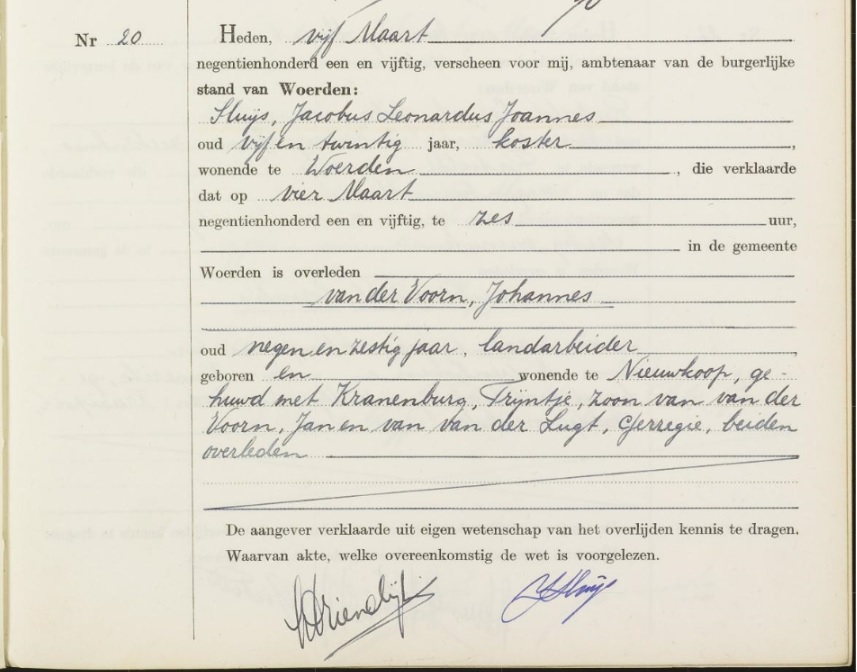 | Overlijden van een broer | Johannes van der Voorn 4 maart 1951 (Leeftijd 56 jaar) |