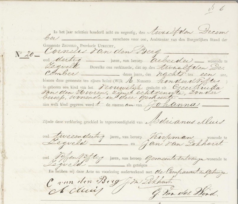 | Geboorte van een dochter #1 | Johanna van den Berg 12 december 1898 – 01:00 (Leeftijd 30 jaar) Adres: Wijk A, nr. 150 |