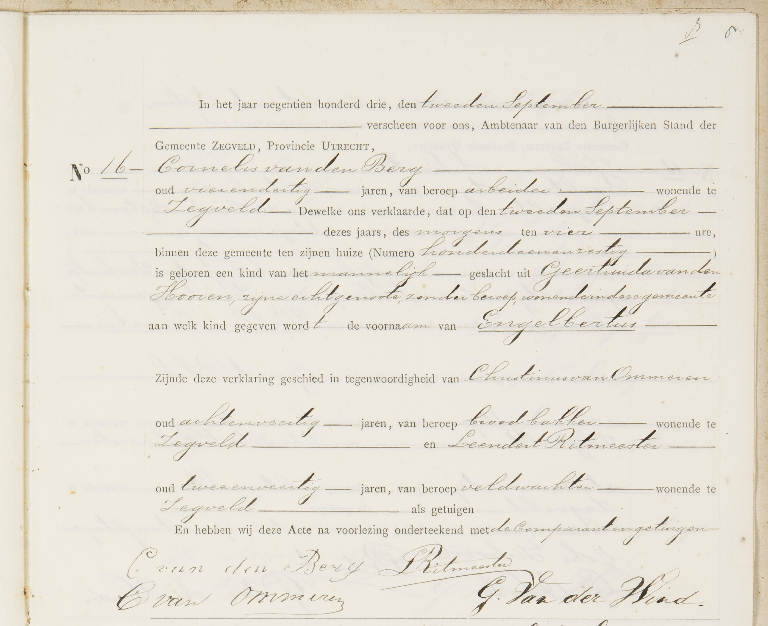 Engelbertus van den Berg Geboren: 1903 34 34 — Zegveld (Utrecht) Overleden: 15 oktober 1903 — Zegveld (Utrecht) |