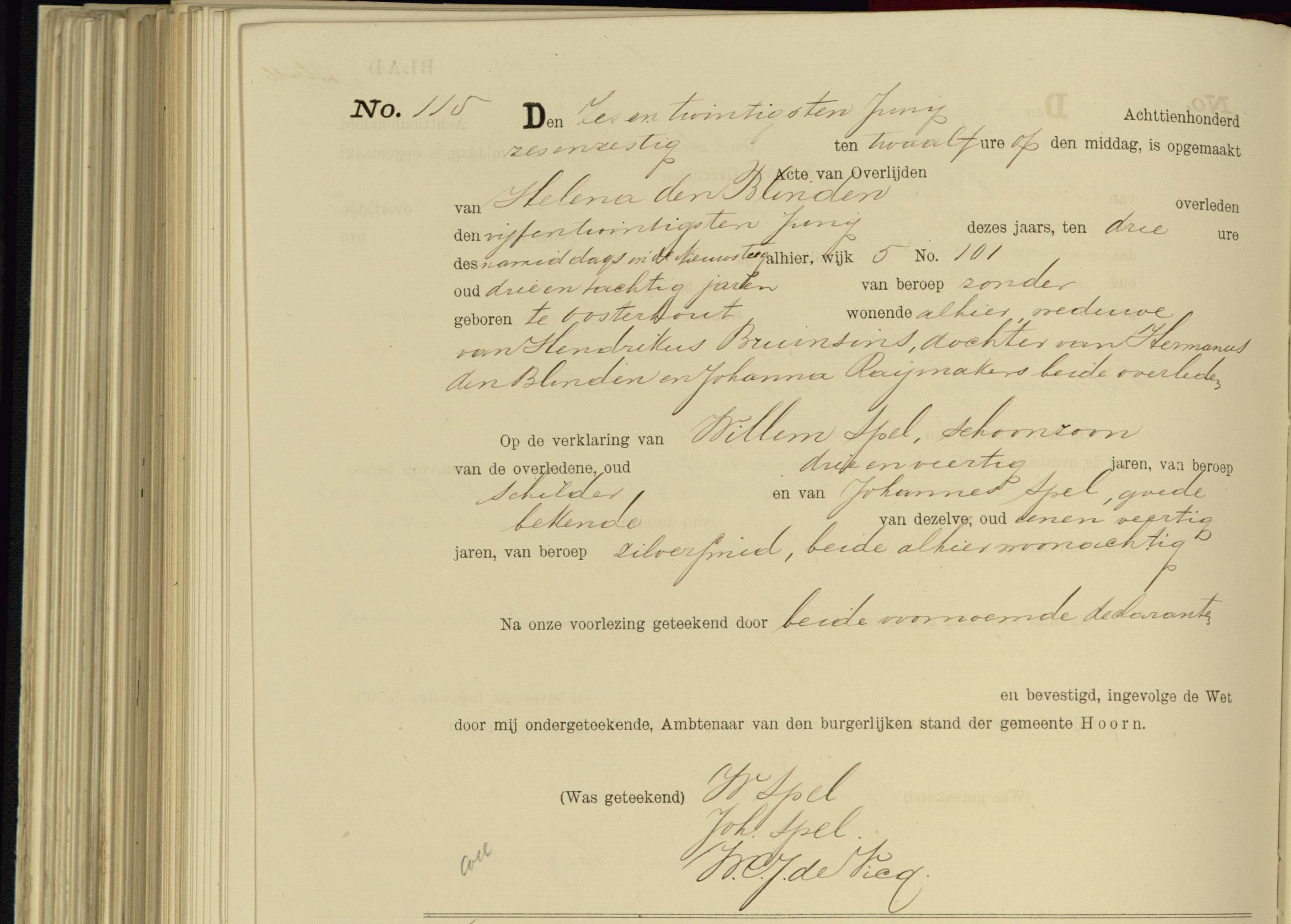 | Overlijden van grootmoeder van vaders kant | Helena den Blinde (Blinden) 25 juni 1866 – 15:00 (Leeftijd 29 jaar) Adres: Nieuwsteeg, wijk 5, nr. 101 |