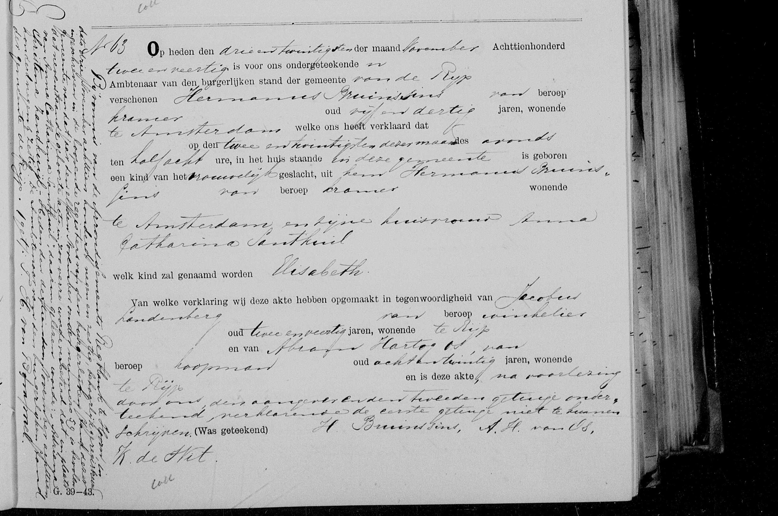 Hermanus Bruinsins Geboren: 2 januari 1874 37 28 — De Rijp (N-H) Overleden: 17 oktober 1874 — Purmerend (N-H) |