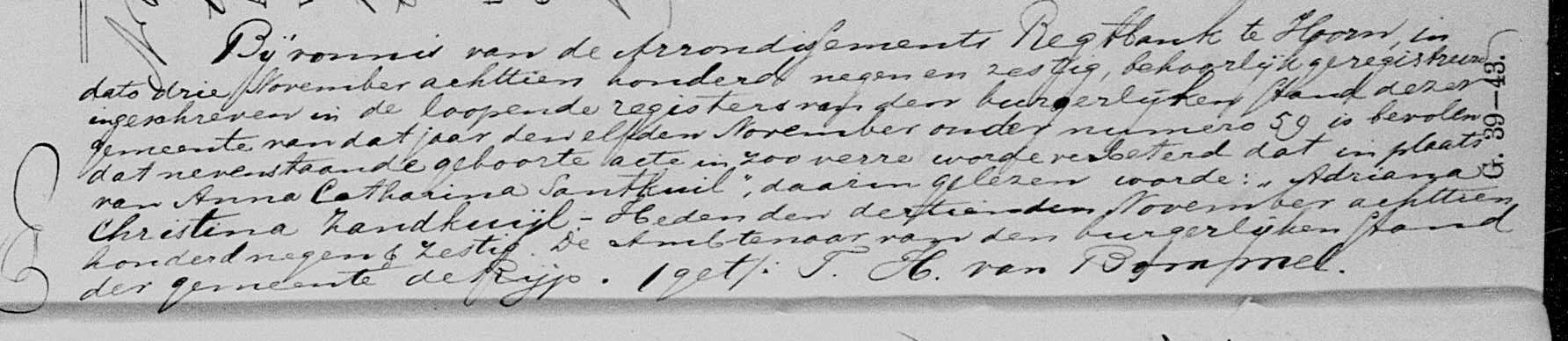 | Overlijden van moeder | Adriana Catharina Zandkuijl (Zandkuil) (Santkuil) 23 januari 1869 (Leeftijd 32 jaar) |