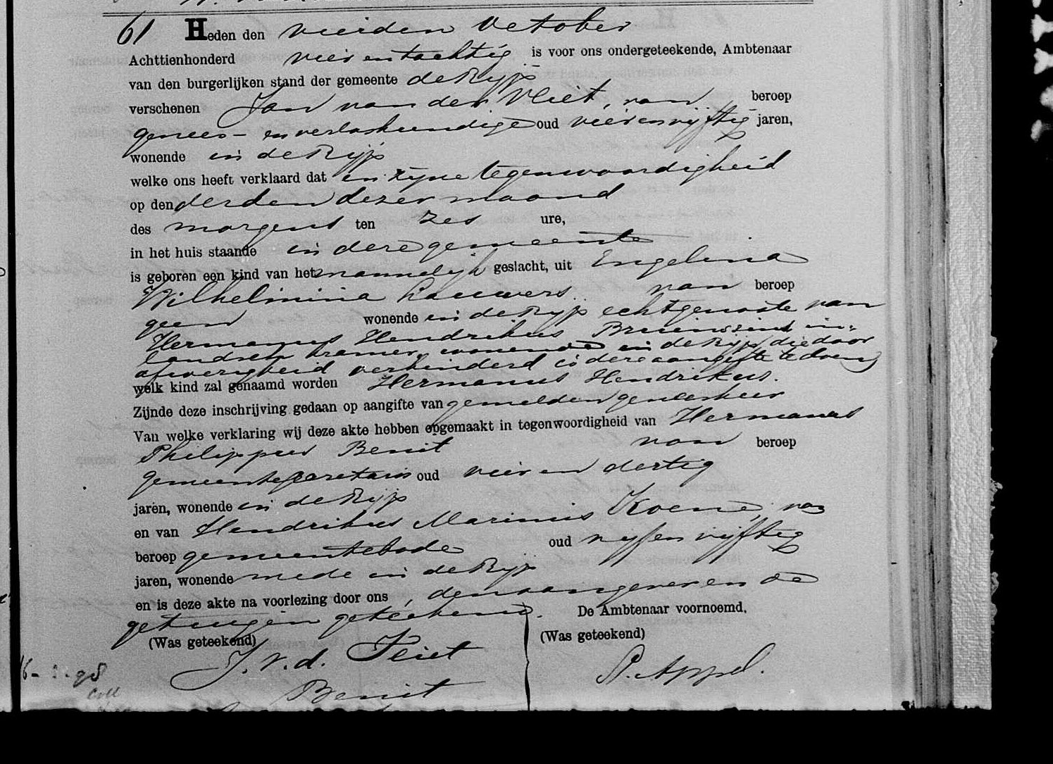 Hermanus Hendrikus Bruinsins Geboren: 31 augustus 1836 27 29 — De Rijp (N-H) Overleden: |