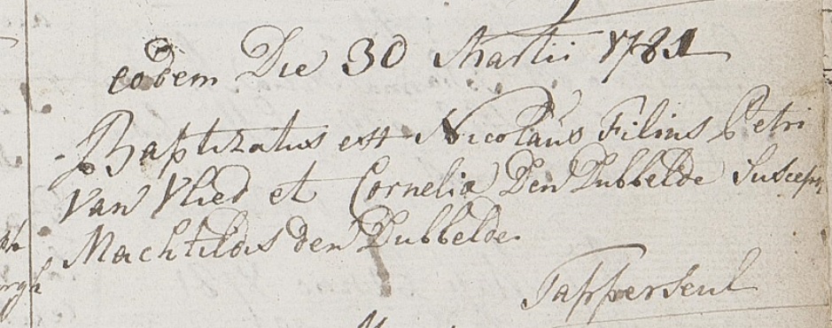 | Doop van een broer | Nicolaas van Vliet 30 maart 1781 (Leeftijd 3 jaar) Adres: Tappersheul |