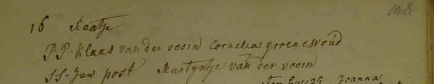 Nicolaus ‘Claas’ van der Voorn Geboren: 21 mei 1704 34 — Leiden (Z-H) Overleden: 26 juli 1785 — Alphen aan de Rijn (Z-H) |
