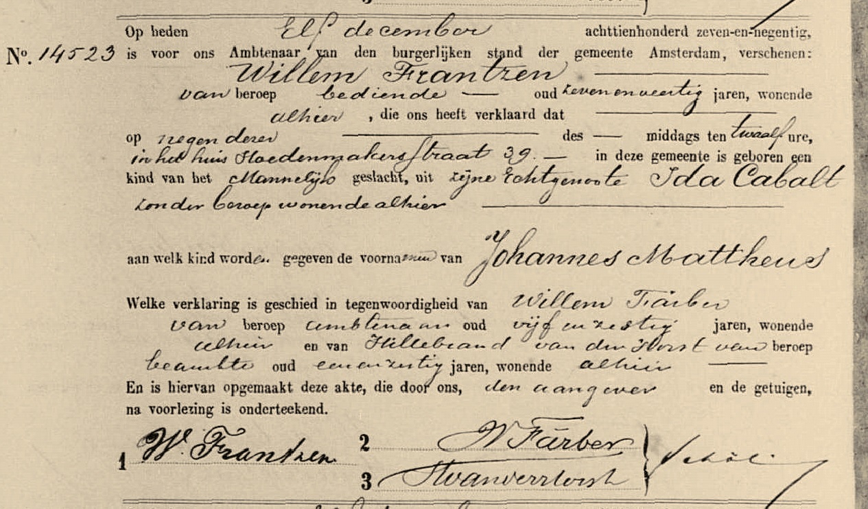 | Geboren | 9 december 1897 – 12:00 uur 47 30 Adres: Hoedenmakersstraat 39 |