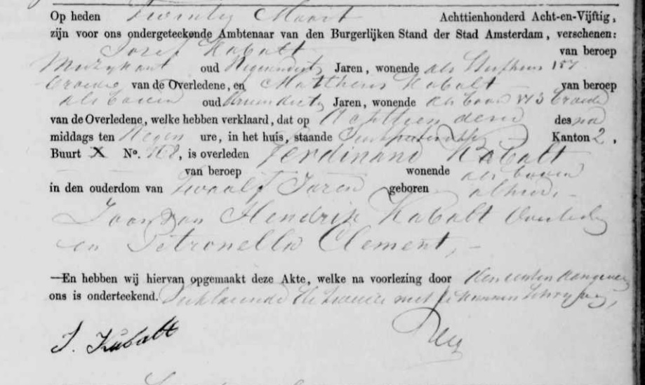 Ferdinand Cabalt (Kabalt) Geboren: 15 juni 1845 49 41 — Amsterdam (N-H) Overleden: 18 maart 1858 — Amsterdam (N-H) |