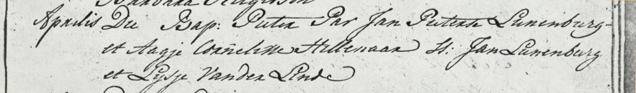 | Doop van een zoon | Pieter Lunenburg april 1757 Notitie: Getuigen: Jan Lunenburg en Lijsje van der Linde |