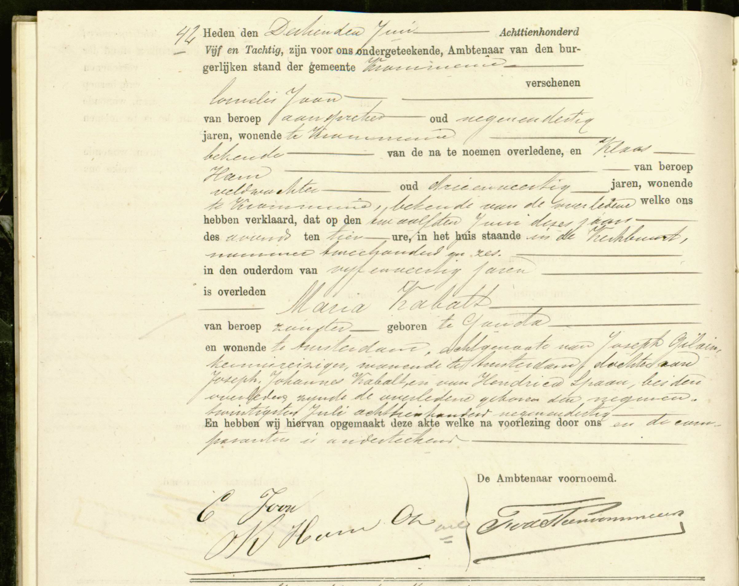 | Overlijden van moeder | Maria Cabalt (Kabalt) 12 juni 1885 (Leeftijd 5 jaar) Adres: Kerkbuurt nr. 206 |
