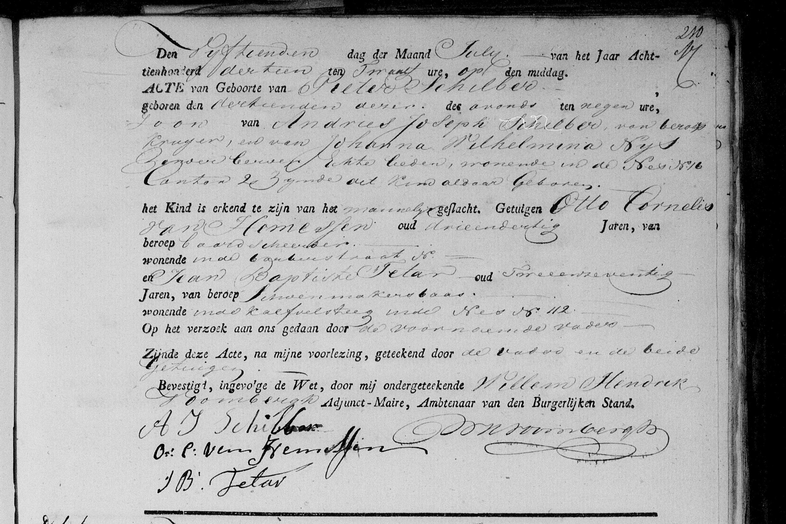 | Doop van een zoon | Andries Joseph Schilber (Schilbert) 5 september 1806 (Leeftijd 35 jaar) Adres: Lutherse Kerk |