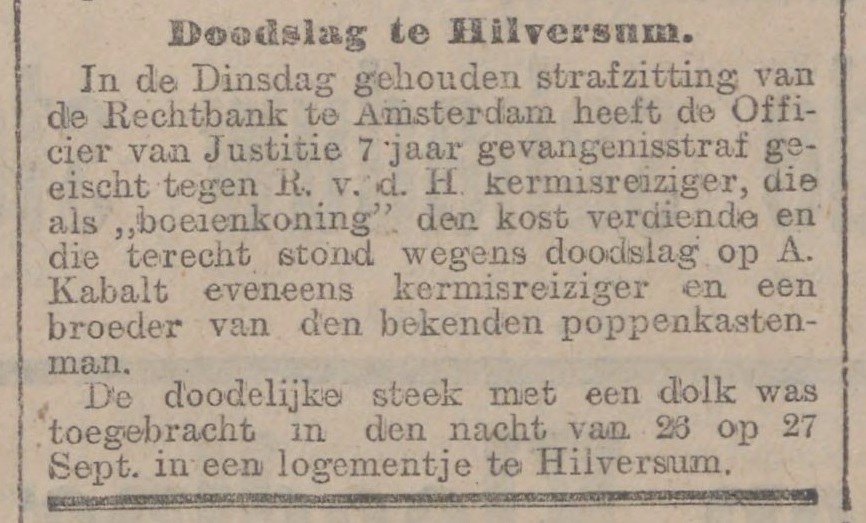 | Overlijden van een broer | Andries Cabalt (Kabalt) 27 september 1911 (Leeftijd 36 jaar) Adres: Honingstraat 13