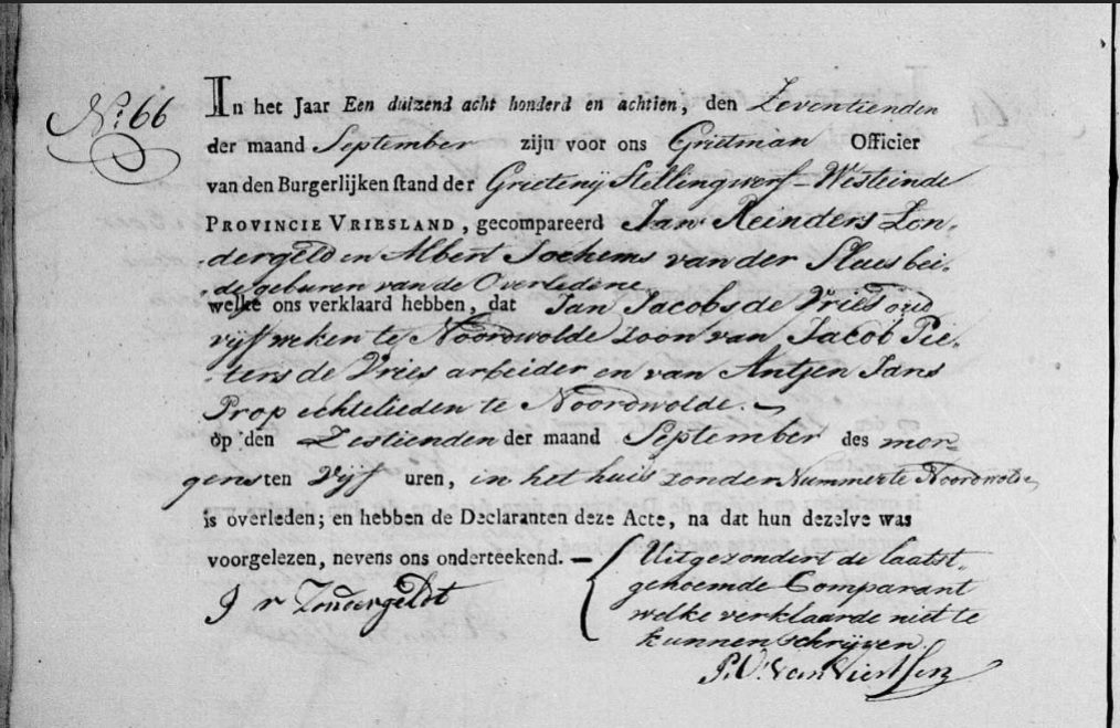 | Overlijden van een kleinzoon | Jan Jacobs de Vries 16 september 1818 (Leeftijd 40 jaar) |