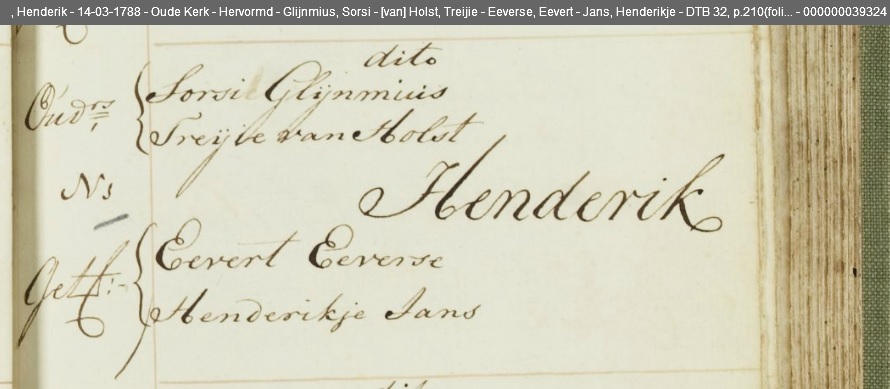 | Doop van een zoon | Hendrik Glijnmius (Glijmius) 14 maart 1788 Adres: Oude Kerk Religie: Hervormd |