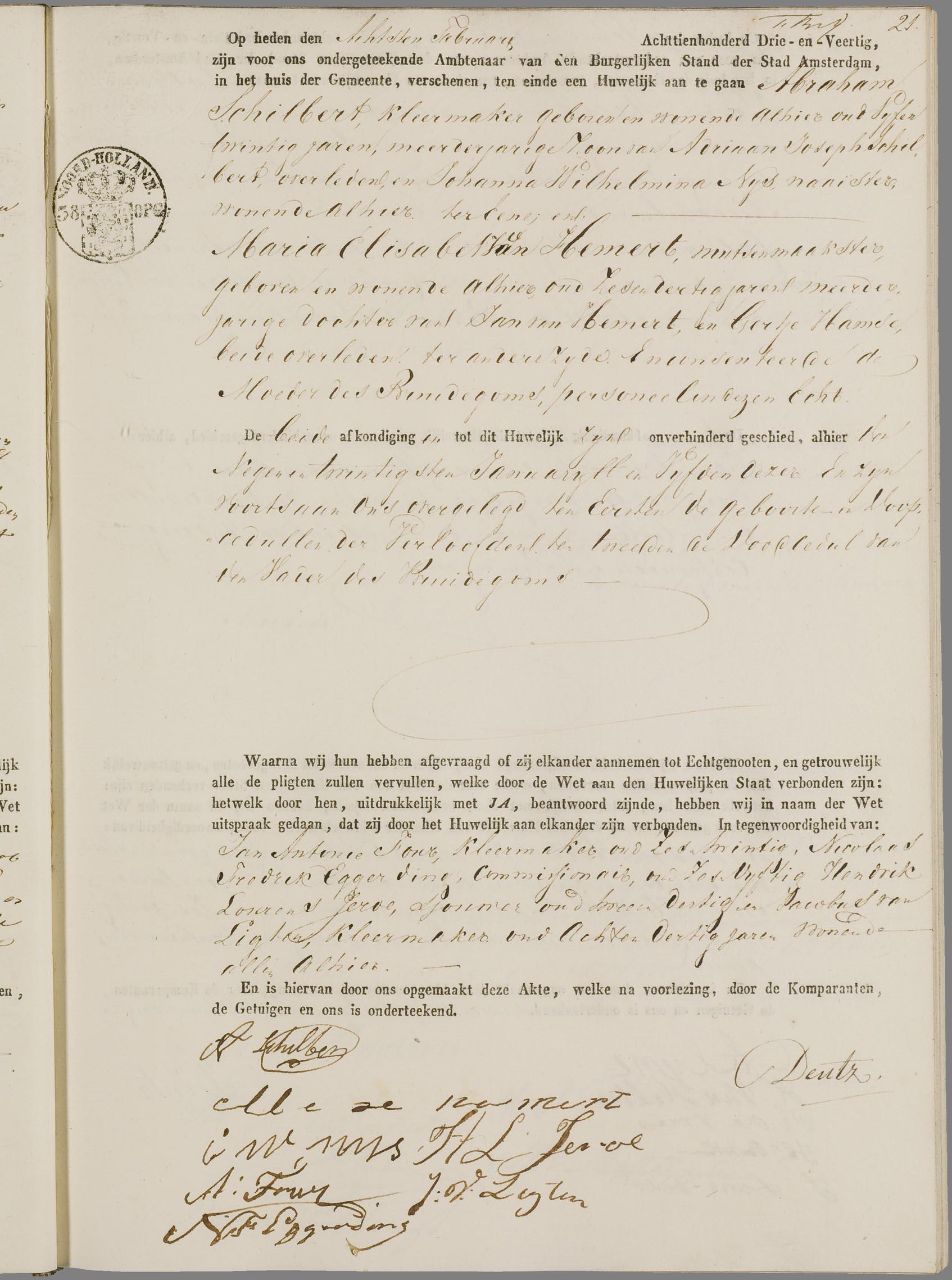 | Huwelijk van een broer/zus | Abraham Schilber (Schilbert) — Maria Elisabet van Hemert — Bekijk dit gezin 8 februari 1843 (Leeftijd 38 jaar) |