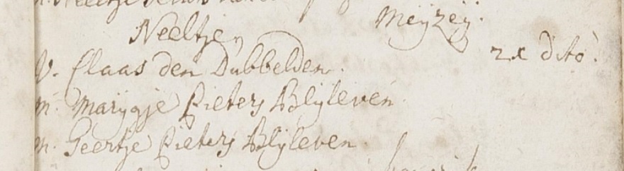 | Geboorte van een zus | Mechtelt den Dubbelden 1747 (Leeftijd 4 jaar) |