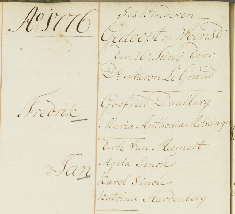 | Doop van een kleinzoon | Jan van Hemert 26 juni 1776 Adres: Noorderkerk Religie: Hervormd |
