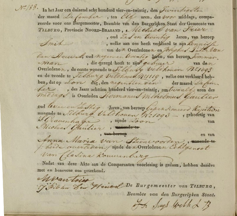 | Overlijden van grootvader van moeders kant | Hermanus Wilhelmus Gautier 19 december 1824 (Leeftijd 10 jaar) |
