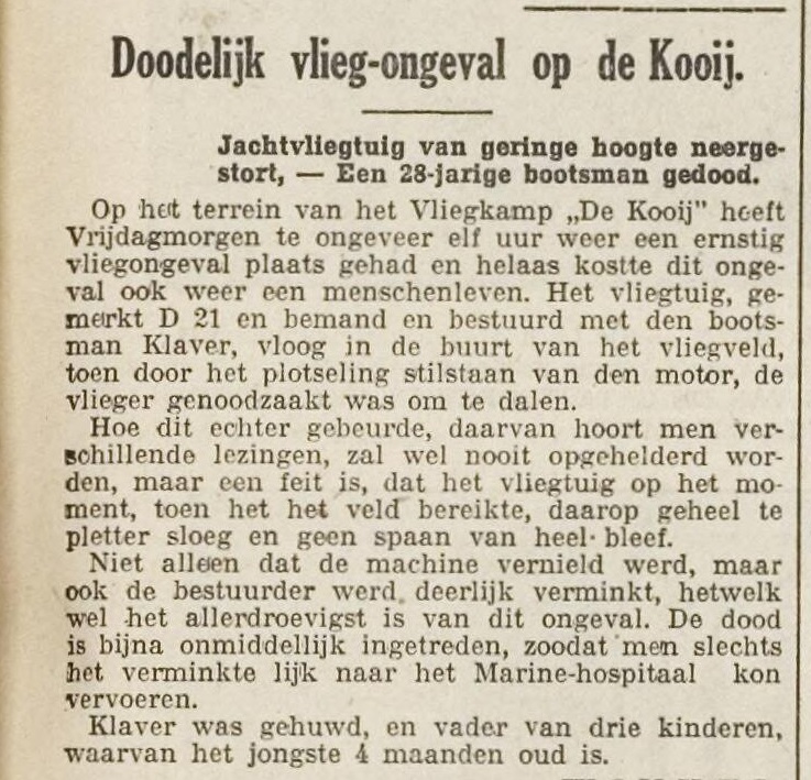 | Overleden | 2 mei 1930 (Leeftijd 28 jaar) Adres: Vliegkamp de Kooij