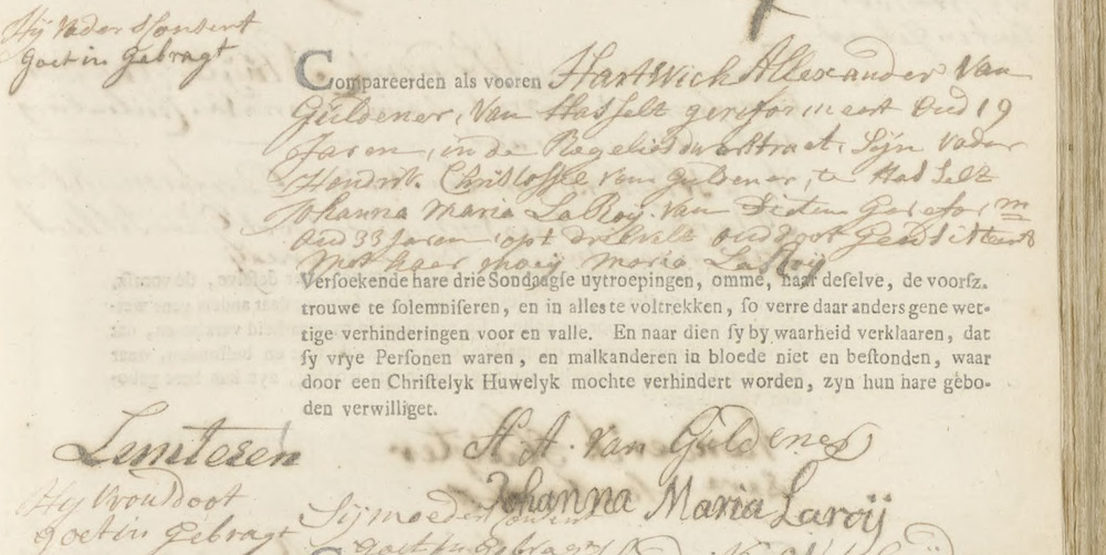 | Geboorte van een zoon #1 | Hendrik Christoffel van Guldener 1773 (Leeftijd 18 jaar) |